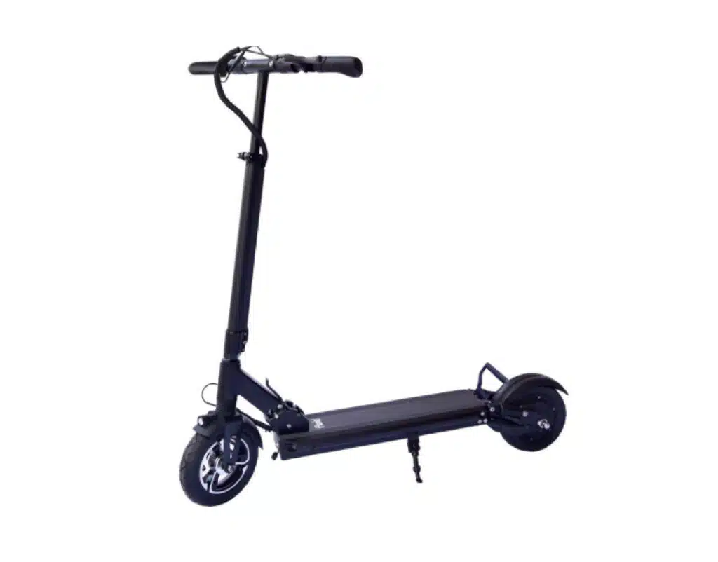 The e scooter lacks suspension, but the ride is relatively smooth thanks to the 10 inchx 3 inch tubeless pneumatic tires that absorb road shocks and are less susceptible to pinch flats. The riding platform is also relatively okay at 19 inches x 7 inches, with a handlebar height of 38 inches. Most adults will get a kick from riding this e scooter, and beginner riders will also enjoy the fact that it is not overpowered.