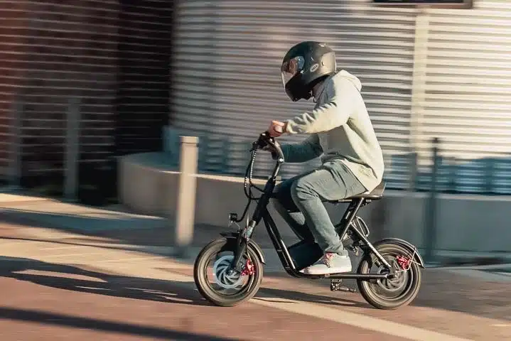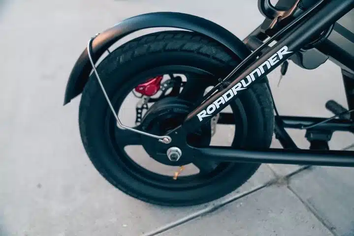 The handlebars can tilt to your most comfortable position. The foot pegs are also more ergonomically designed than those on e-bikes. The Roadrunner can accommodate a 330 lbs weight load capacity. Unfortunately it’s not IP rated despite it being advertised as an all weather electric scooter. But for your night riding, it comes with a nice headlight, tail/ rear brake light ,deck lights and integrated turn signals to ensure you go the whole length of journey safely.