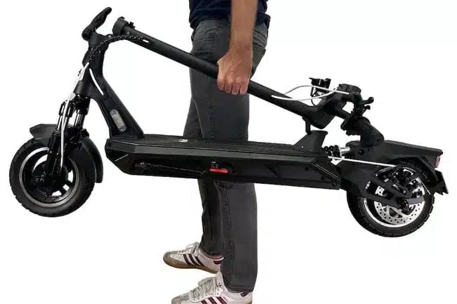 The GOTRAX F2, for example, is a very manageable size when folded and will easily fit in the back of a large closet or an SUV. And it weighs about the same as the Fluid Vista at 58 lbs. It’s not light, but not much heavier than some of our most beloved electric scooters like the EMOVE Cruiser S.
