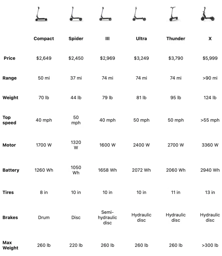 Dualtron Comparison Table