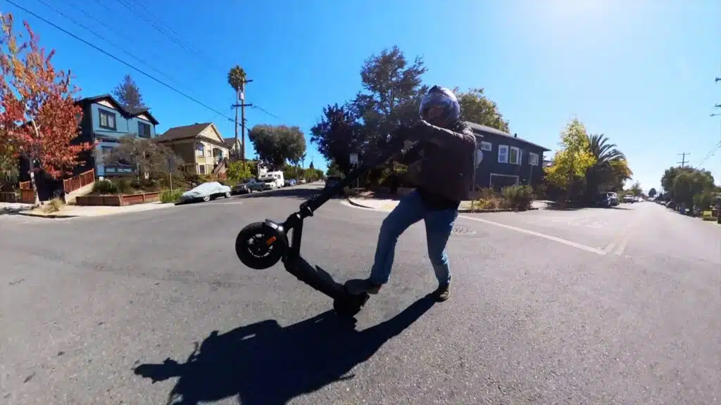 As you can see in our video review below, I pulled two unintentional wheelies while riding this scooter, so it’s probably not for brand-new riders. Unless you think you can always remember to keep your weight forward during hard acceleration, you could end up flat on your back.