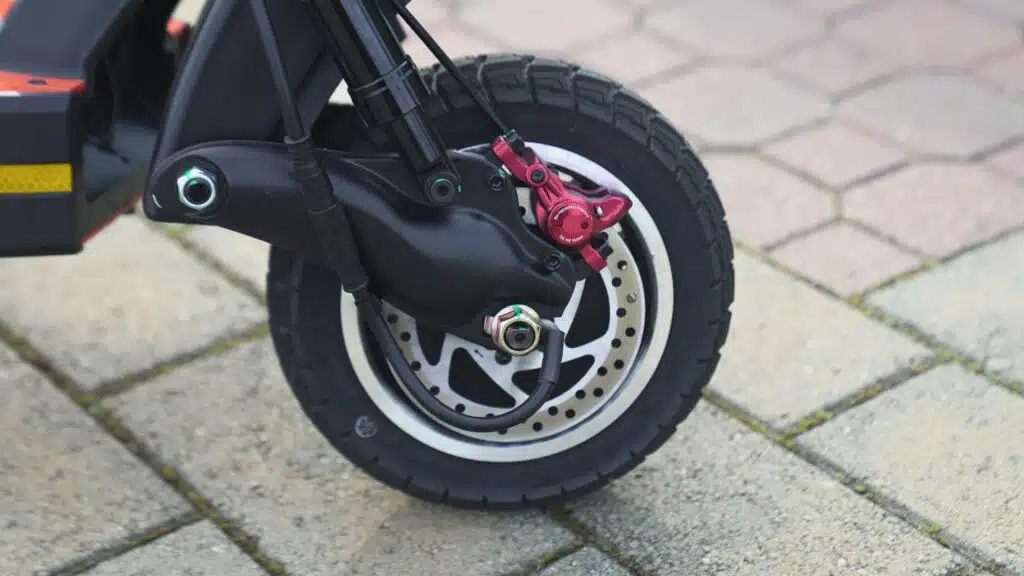 Partnering [rg_unit value = "10 inch"] air-filled tires with dual disc brakes is the most effective combination for safety, as they help you stop fast and handle terrain.