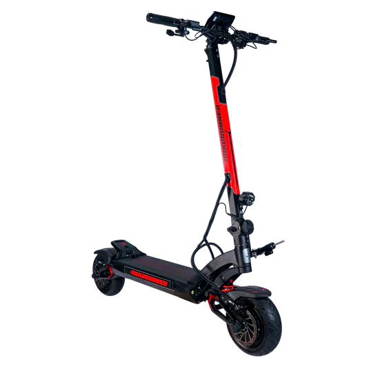 After testing more than 200 electric scooters over the past six years, we can confidently say the Roadrunner RS6 Ultra is the fastest 60V scooter we’ve ever reviewed. Powered by dual 1500W motors and a 60A sine wave controller, it reached 58.5 mph in our real-world test, blasting from 0 to 15 mph in just 1.77 seconds and flying up steep hills in 6.35 seconds. Stability is equally impressive thanks to adjustable KK hydraulic suspension, 11x4” PMT racing tires, and a steering damper that keeps the scooter planted even at top speeds. Add in a sharp 4.5” TFT display, Nutt hydraulic brakes, and Roadrunner’s futuristic “Road Glow” lighting, and the RS6 Ultra feels like a complete high-performance package.