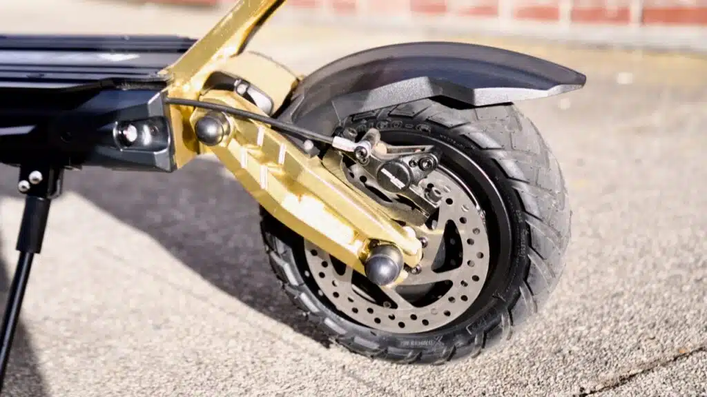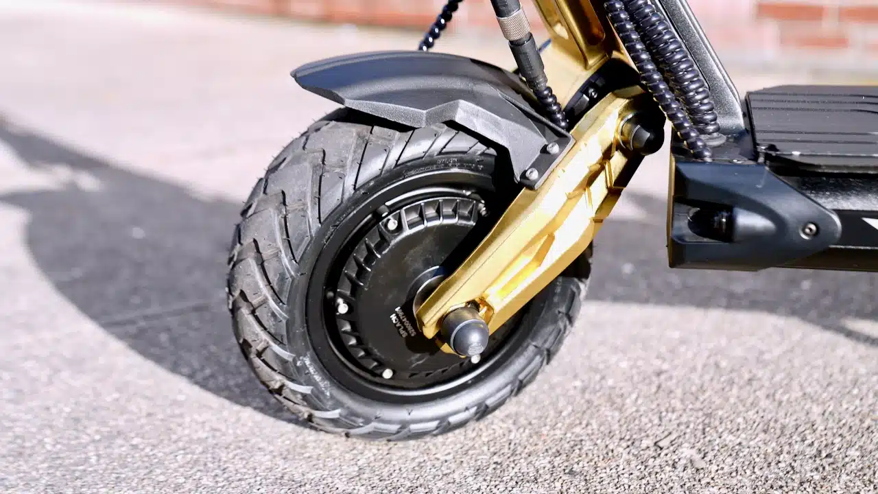 The Thunder 10 has 1600W of power from dual motors, with 2400W of peak output. It’s got a battery 47% bigger than the comparably-priced Segway Ninebot Max G2, and it has one of my favorite kinds of suspension – a rare kind we usually only see on Dualtron scooters – rubber cartridge.